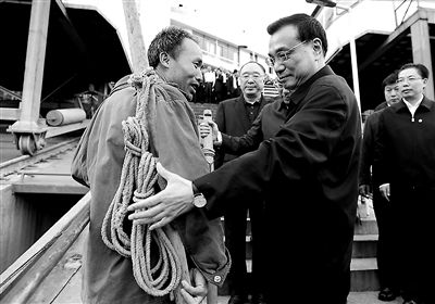 在万州港码头,李克强对“棒棒”们深情地说:“你们很了不起!每一分钱都是流汗挣来的,是中国人民勤劳的象征。”