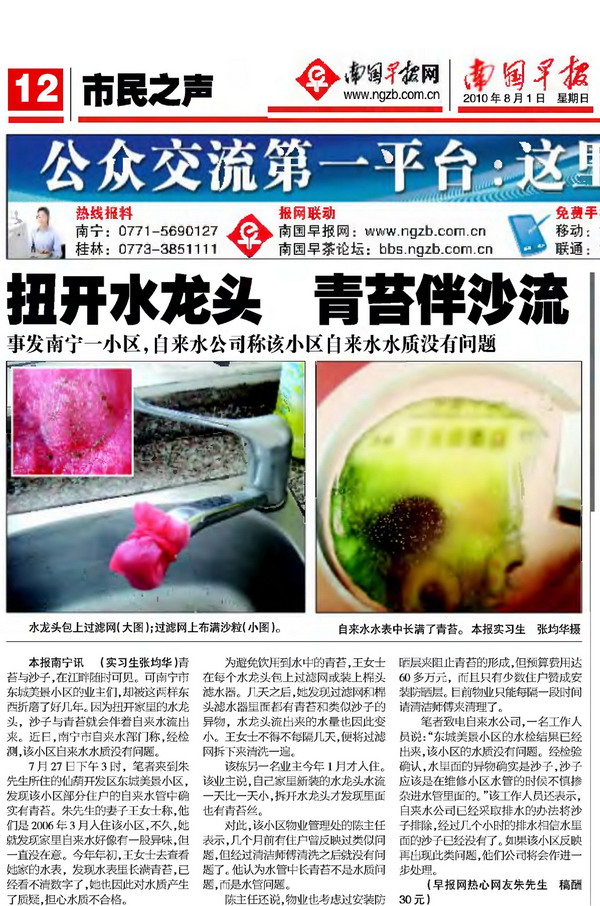 剪报:南国早报 扭开水龙头 青苔伴沙流